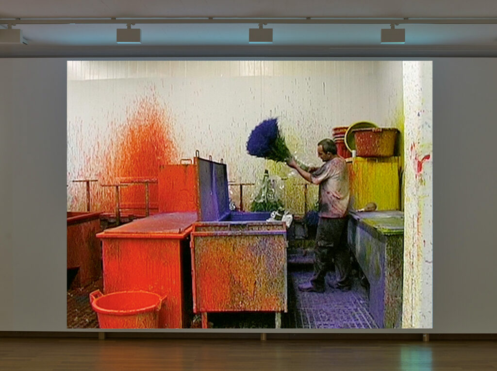 Neben den sich aufdrängenden Gedanken zur Absurdität manch ephemeren Wohnungsschmucks beinhaltet das Video zudem einen – wohl ungewollten, aber dennoch nicht weniger treffenden – Beitrag zu Auftrittsformen der Malerei: Während des Färbeprozesses wird aus der Werkstatt ein dreidimensionaler Bildraum, der durch Sprühen und Drippings intensiv mit Farben bearbeitet wird und mit einem Resultat aufwartet, das mit etwas Fantasie als Werk in der Tradition des abstrakten Expressionismus gelesen werden könnten.