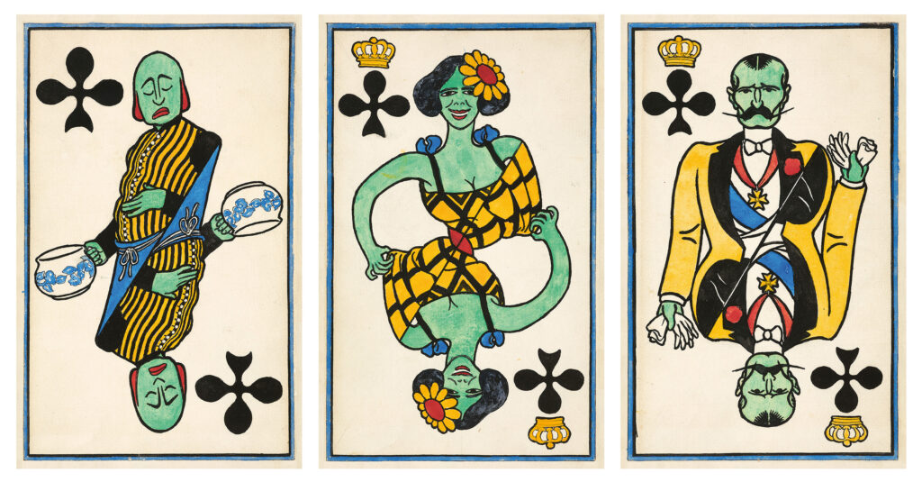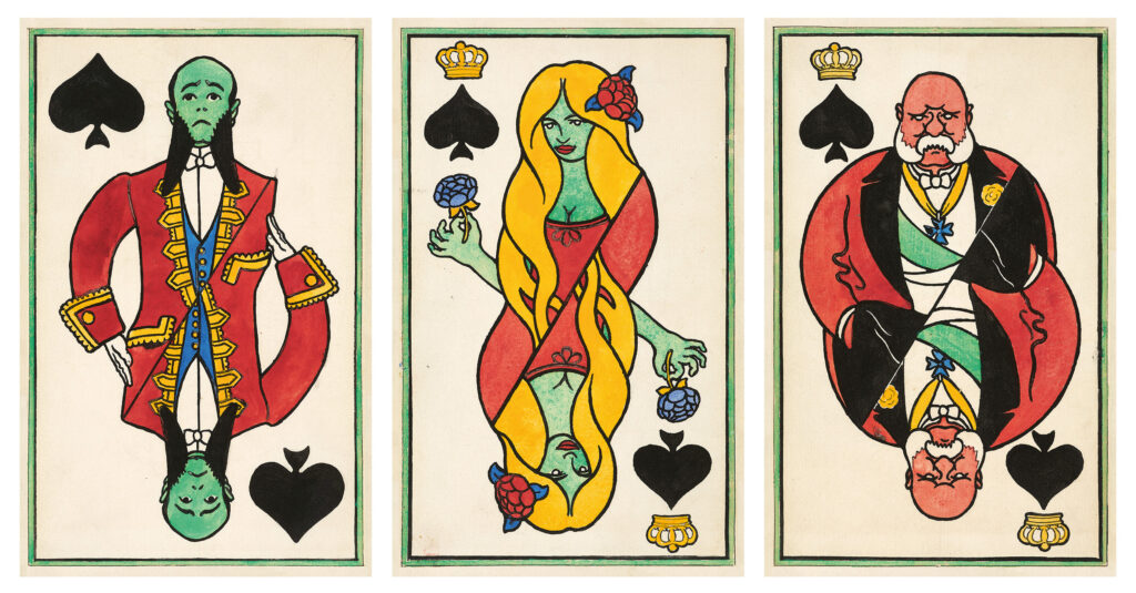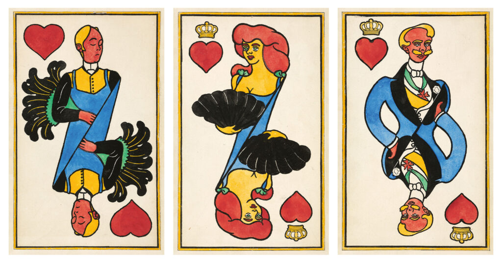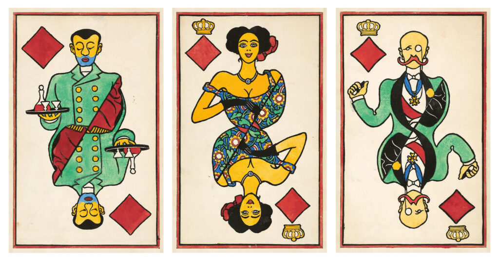 Félix Vallotton (1865 – 1925), Zwölf Spielkarten, 1898. Feder, Pinsel, Gouache und Aquarell auf Papier, je 21 x 13 cm (Kartenmass), Inv. S8001